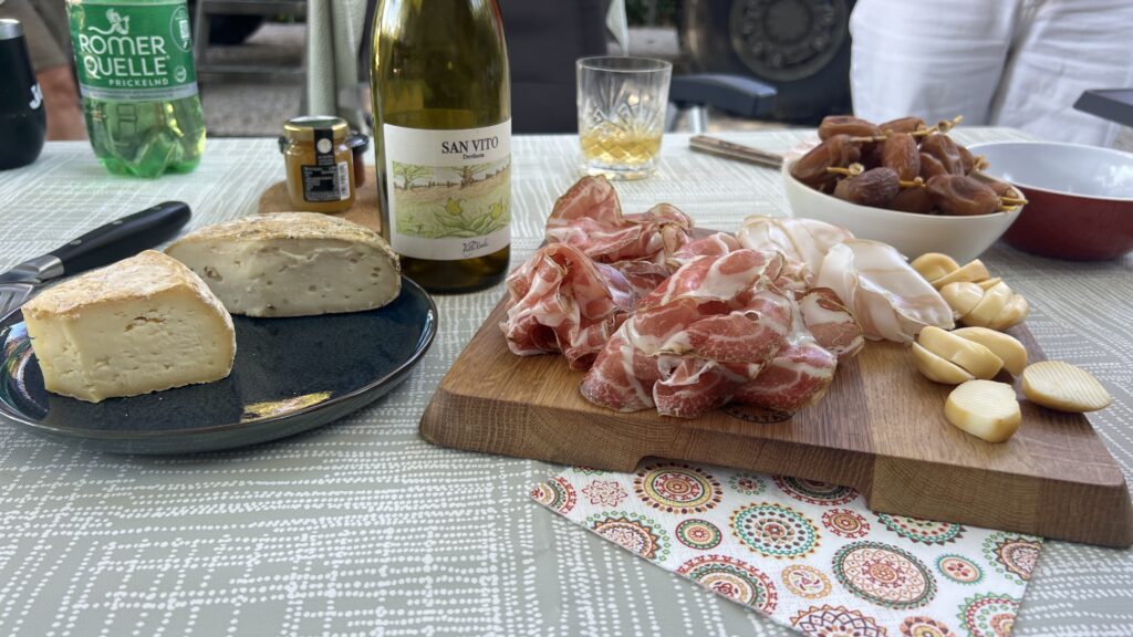 Sir Gusto – Culinary Journey – auf der Terrasse unseres Expeditionsmobils mit Außenküche, bereiten wir raffinierte Gerichte aus regionalen Spezialitäten vom Markt, Metzger und Bauern zu.