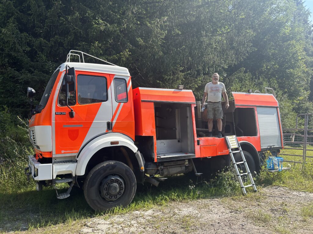 Wir nahmen uns viel Zeit zur Planung eines solchen Fahrzeugs und Kontaktierten im Februar 2023 4wheel24, den führenden Spezialisten für Fahrzeuge dieser Art. Nach unzähligen Verhandlungen und weiteren Planungen gaben wir im Mai 2023 den Auftrag für eine leere Wohnkabine, ein Möbelbaupaket zum selber einbauen und den Fahrzeugbau. Im Oktober 2023 kaufte ich ein altes Feuerwehrauto, einen Mercedes SK 1831. Die Kabine mit den vorgefertigten Möbeln konnte ich zwischen Weihnachten und Silvester 2023 abholen.
