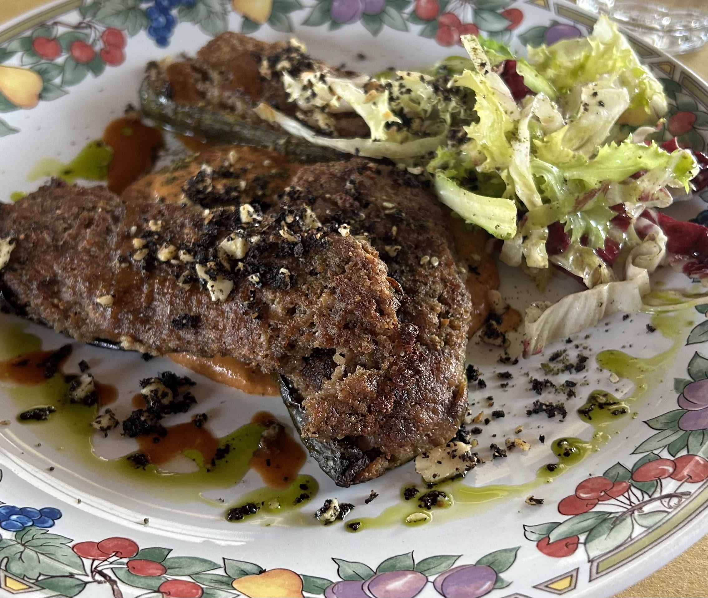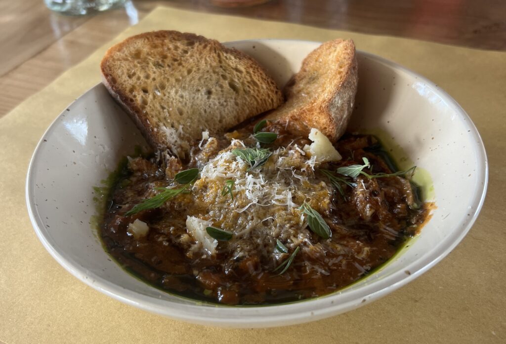 Am Wochenende macht das Restaurant auch für Gäste von außerhalb auf. Die Italiener haben sich rausgeputzt vom allerfeinsten – da waren wir ganz sch underdressed! Ich habe die besten Kutteln meines Lebens gegessen. Britt hatte gefülltes Gemüse, Rimesco-Sauce und palästinensisches Za’atar. Valli Unite ist unsere Geheimetip zum verweilen und runterkommen.